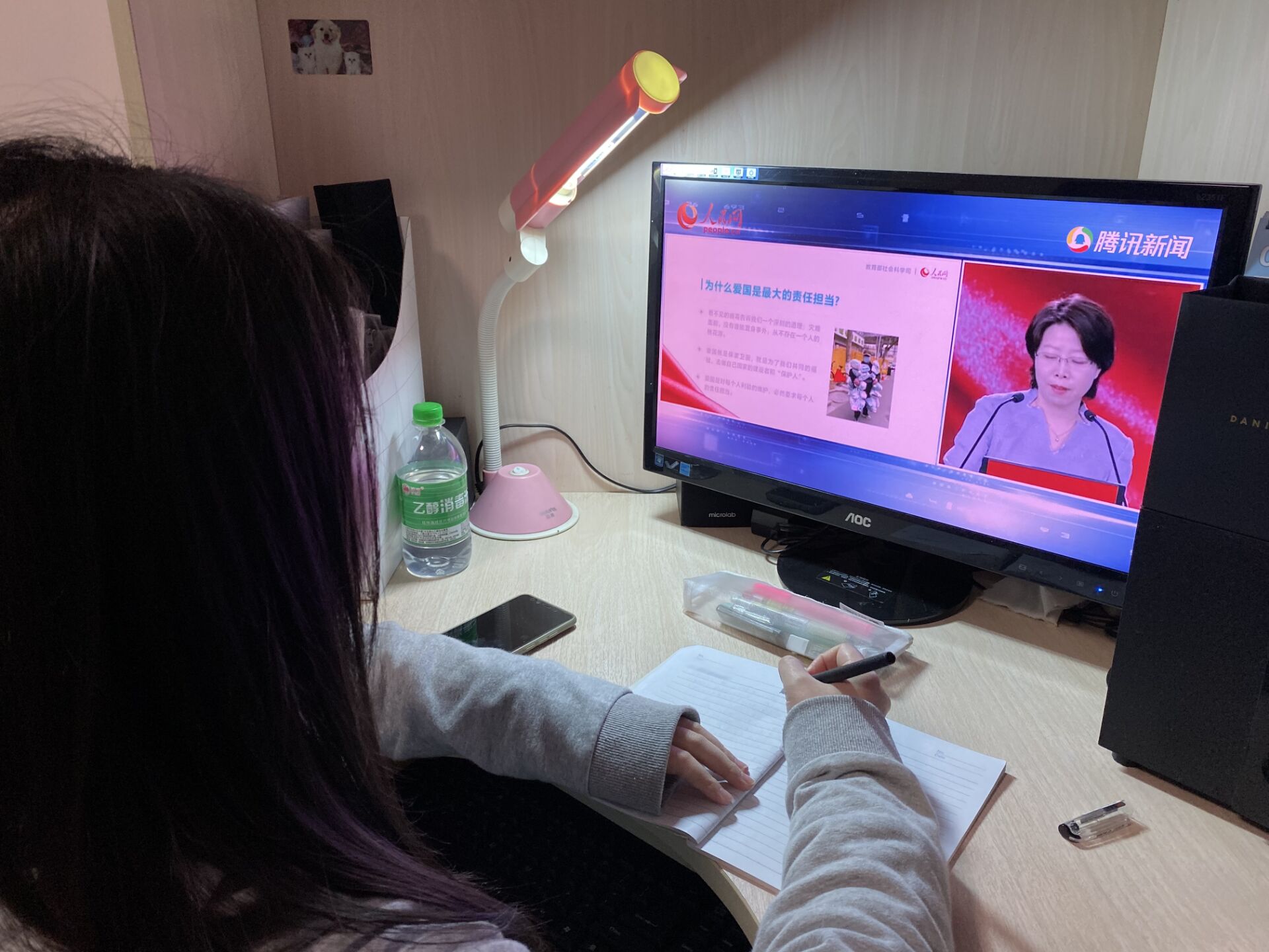 活动首先集体观看了由教育部和人民网联合推出的《疫情防控思政大课》节选段之冯秀军教授主讲的《战役里的最美青春,谈中国青年的责任与担当》直播课。