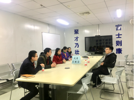 (通讯员:汪盼)为加强与企业的沟通联系,获悉企业对人才的需求和质量要求,更好地跟踪调查员工的实习就业情况。2019年12月12日下午,球友会副经理王波、党总支副书记张丽芳、辅导员汪盼以及金石兴就业指导部总监晏传杰、高校运营部主任杨洁、就业指导老师李英一行到武汉鸿富锦工业精密有限公司(富士康),在公司人力资源部经理李森和人力资源部经理方海东的陪同下,回访了公司2020届毕业实习生,并进行了深入交流。