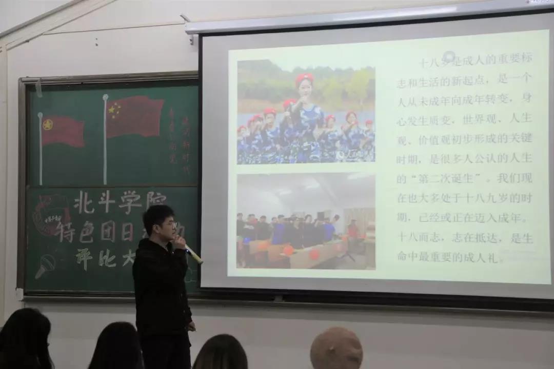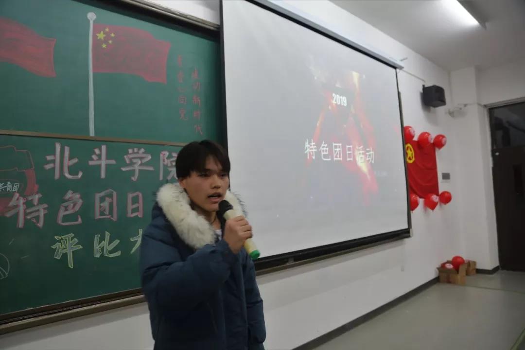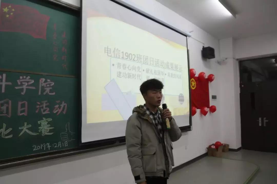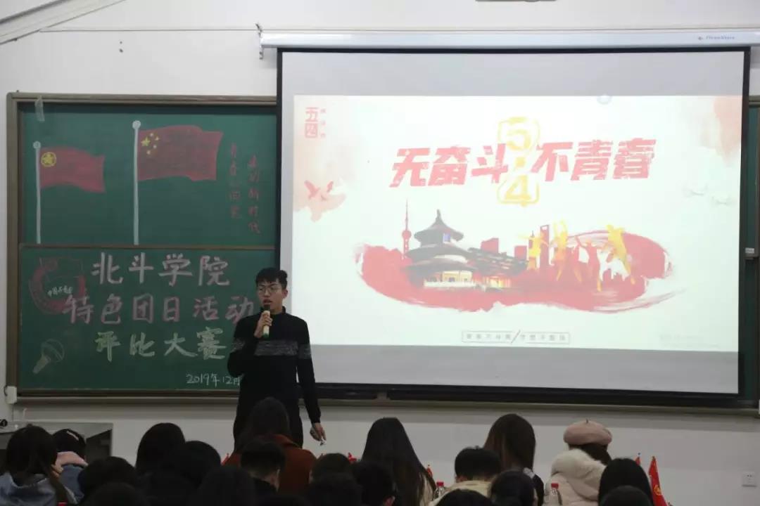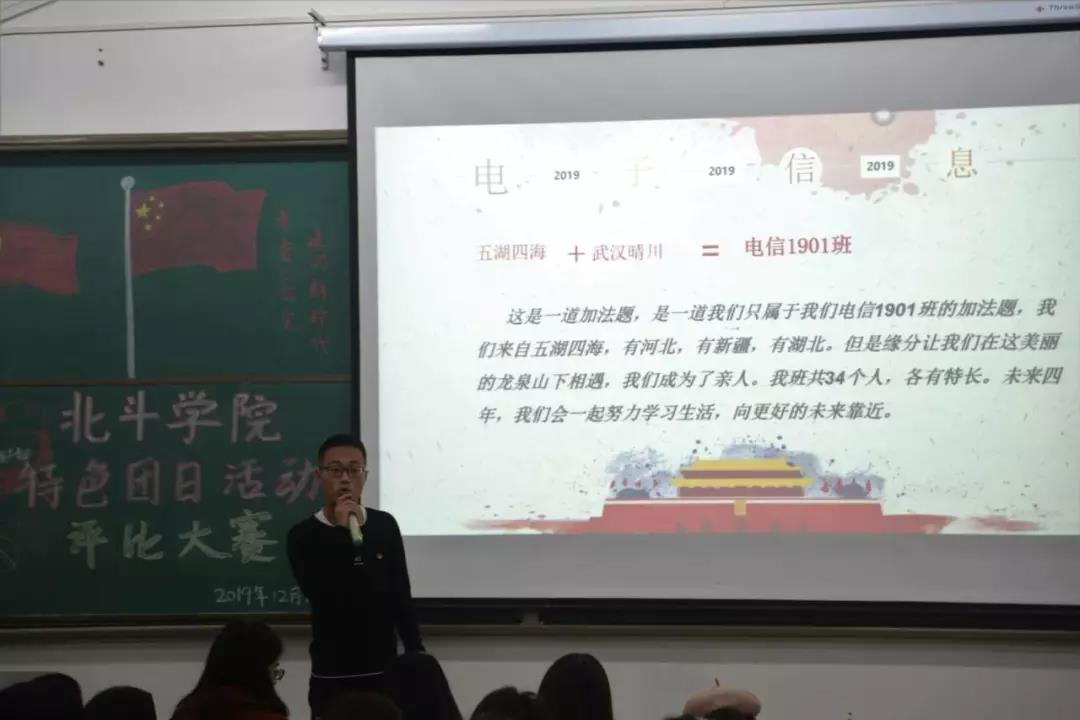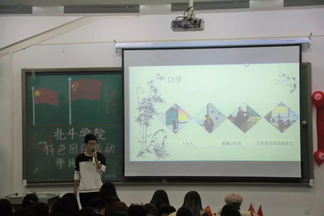 在主持人宣读完比赛规则以及评分规则后,比赛正式开始,各班代表依次上台展示自己班级独特的风采。他们的活动主题各不相同:建国70周年、党的十九大、五四运动、香港回归22周年……风格迥异的介绍方式让大家眼前一亮,多种多样的风采让我们感受到了各个班级的凝聚力和向心力。
