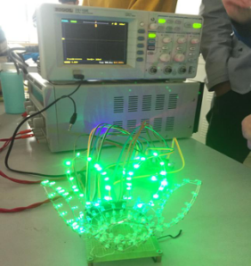 “LED创意设计大赛”需要选手们充分发挥想象力和创造力,结合现实生活中的灵感,设计一份LED创意作品。经过大力宣传,全校共有40多组80多人次报名参加了比赛。很多同学的参赛作品复杂程度较高,在正式比赛的一天时间内根本无法完成,于是他们利用课余时间,加班加点完成作品,才得以让作品在评审当天能展示在评审老师面前。还有很多大一和大二参赛的同学,由于完成作品过程中还涉及很多之前未能学习的知识点,于是他们通过请教学长、老师以及网站上查阅、自学等多种方式先学习再比赛,这也实现了以赛促学的办赛目的。最终比赛涌现出一批优秀作品,如“十字路口交通灯设计”、“单色LED广州塔”、“16*16点阵LED汉字显示屏”等,尽管程序、电路复杂、焊接繁琐,但选手们依然潜心研究、耐心完成,那种专注与执着不得不让人敬佩与感动。参赛者本人在测试成功的那一刻,看到闪烁的LED作品更是激动不已。