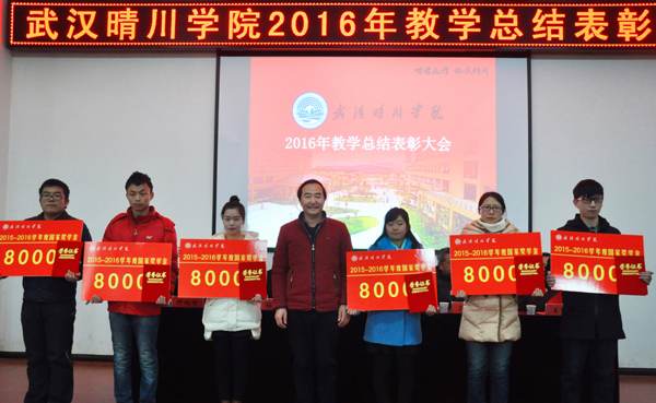 “2016年,是学校转设更名、入驻新校园的第一年,学校人才培养工作实现了开门红。省级重点(培育)学科、硕士研究生联合培养项目、湖北省本科高校‘专业综合改革’试点项目均增至2个,入选湖北省应用型高等学校联盟首批成员……近20位知名专家教授加盟学校,涌现出近百名学科竞赛优秀指导老师……国家级创新创业项目、省级重大项目均有突破……”12月28日,在千亿球友会2016年度教学总结表彰大会上,董事长汪彬教授对学校2016年取得的教学成绩如数家珍,催人奋进,赢得与会师生阵阵掌声。