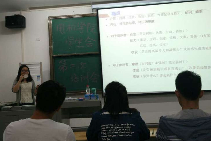 然后杨经理向我们提出了“复盘”一词,其实复盘是一种策略,在很多方面都会用到,在完成一件事后反过头来重新审视一遍就是复盘,以万达公司的成功营销模式和好莱坞的电影创作过程深刻的向我们阐释了复盘对于成功来说是多么重要。除此之外,杨经理向我们讲述了她第一年来咱们晴川学院工作时的深刻记忆,第一次组织一次晚会,出现了临时更换地点、调换节目、电力不足等问题,以及当时和员工会成员一起共同努力十二个小时没吃没喝,最终成功举办晚会的事情。我们每个人都为杨经理以及当时的员工会成员的团结努力而感到动容!