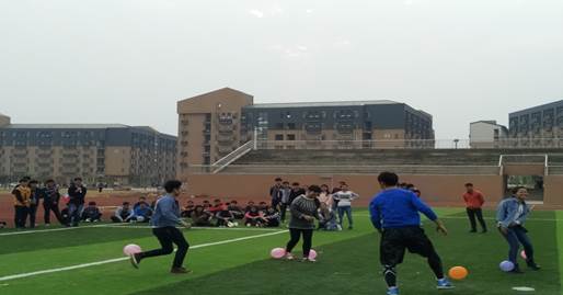 第一个开心一刻环节,我们开展了踩气球游戏。参赛者每人在小腿踝关节处绑上气球,脚上气球被踩破就算出局,最后留在场上的一方胜出。参赛者们为获取胜利,采取强强联手的作战计划行动,男生之间采取直面出击,可当碰到女生后确节节败退。经过一番激烈的比赛后,赛场上还剩下两名女生和一名男生,活动现场气氛十分活跃。