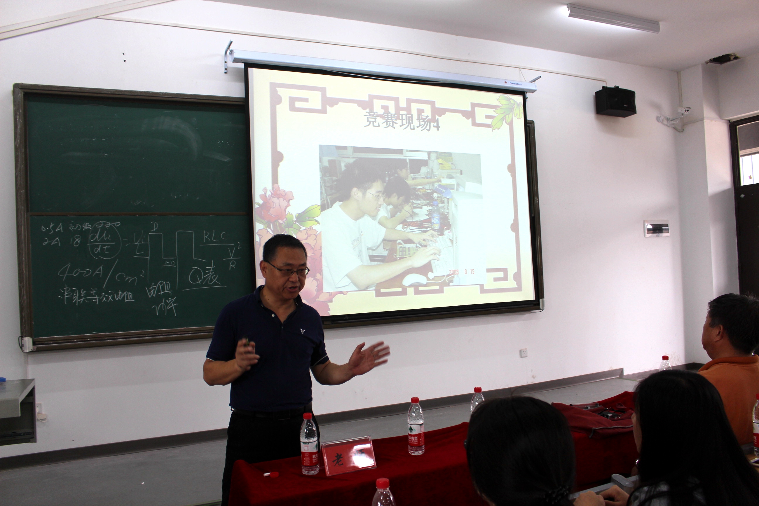 6月15号下午,电子信息与机电工程学院(以下简称电机学院)在教学楼1-501成功举办了“全国老员工电子设计大赛”指导讲座,特邀武汉大学电赛总教练、武汉大学电信学院黄根春副教授主讲。备战2016年全国电赛的全体选手及联创电子协会的会员们踊跃参会,讲座还吸引了来自计算机学院、电气学院等部分爱好电子设计的同学们。讲座由电机学院经理田茂教授主持,党总支副书记杨玖炼老师和负责电赛指导的教师团队全部出席讲座。
