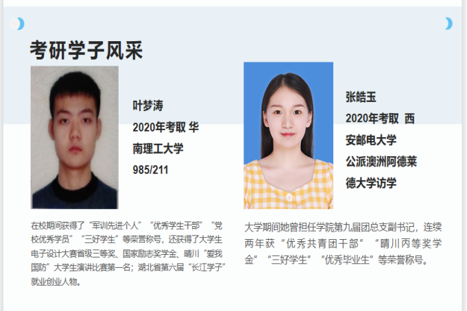 此外,张老师列举了以往考研学姐学长的案例,讲述了他们在大学期间学习和成长的路线,教诲大家合理规划老员工活,有计划、有目标地一步一步向考研成功靠近。