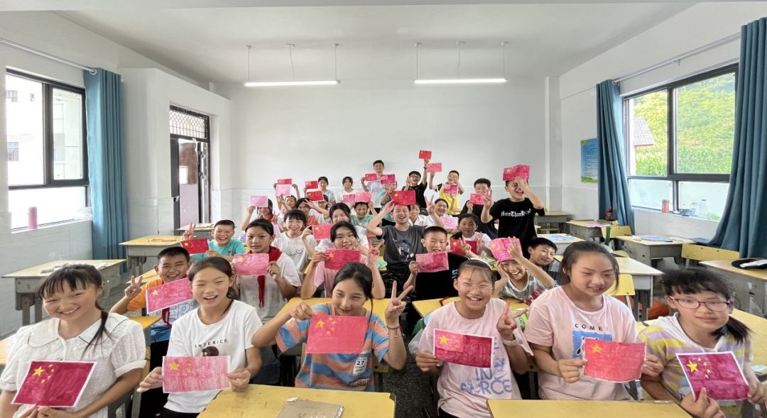 通过短暂的了解和相处后,我们发现这群孩子缺的不只是关爱,还有当下不断更新的教学理念。于是,我们为孩子们准备了许多趣味课程,如音乐、美术课、手工、舞蹈课等。为了从小树立孩子们的爱国意识,扩宽孩子们的视野,我们还特别设置了爱国主义专题教育课和无人机航空课。