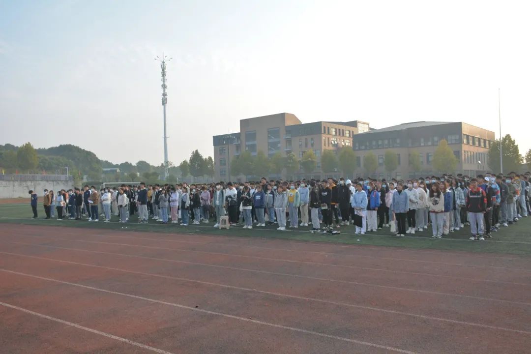 早操锻炼。本次升旗仪式结束后由电信2021班带队进行早操锻炼,围绕操场慢跑两圈,然后各班自行解散。