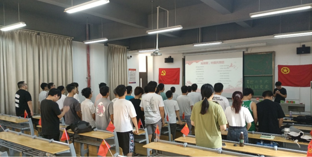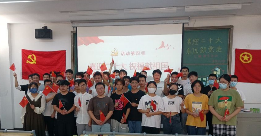 活动伊始,由吴天利同志介绍活动目的和主要内容,强调此次活动旨在加强班级成员对于中共二十大的认识,并以此激发各成员的爱国主义情怀,促进班级团结统一。此次活动共分为齐唱中国共青团团歌、喜迎二十大·奋斗新征程的主题教育演讲、“回望历史,牢记使命”以及祝福献祖国活动四个环节。