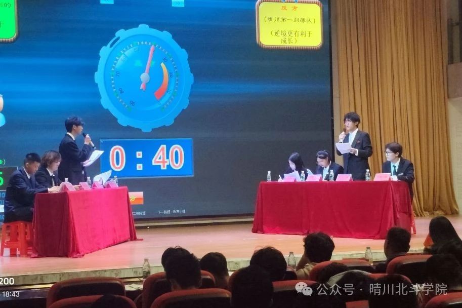 该场比赛的辩题是:顺境|逆境更有利于成长。由电信2401班的:清华北大得不到的辩论队(正方)与导航2401班:晴川第一刻薄队(反方)的八名辩手进行冠亚军的争夺。担任本场比赛的评委为:公司党总支副书记漆良军老师,球友会团总支书记李晓嫚老师,辅导员阳军老师,岳檄文老师,黄山老师,韩晓妹老师,以及球友会辩论队潘马彧涛同学。