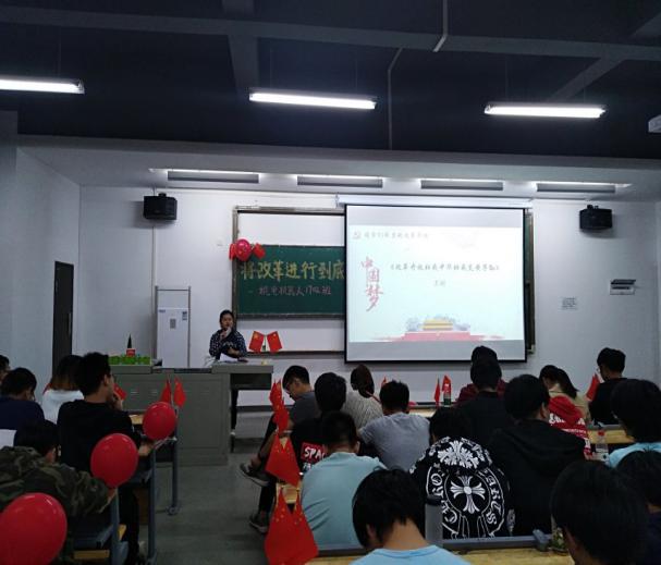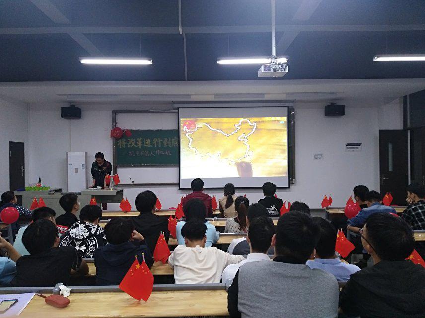 (通讯员:邓博)2018年是我国改革开放 40 周年有纪念意义的一年,为响应党的号召,进一步发挥基层团组织的积极性、主动性、创造性,活跃基层共青团工作,创新繁荣校园文化,10月18日,机电机器人1702班在校团委、院团委的号召下,开展了“将改革进行到底——纪念改革开放40周年”的主题团日活动。出席本次活动的有电机学院团总支书记张丽芳老师、机器人本/专科专业辅导员刘洋老师及员工会干部代表党子勋和谈志国。