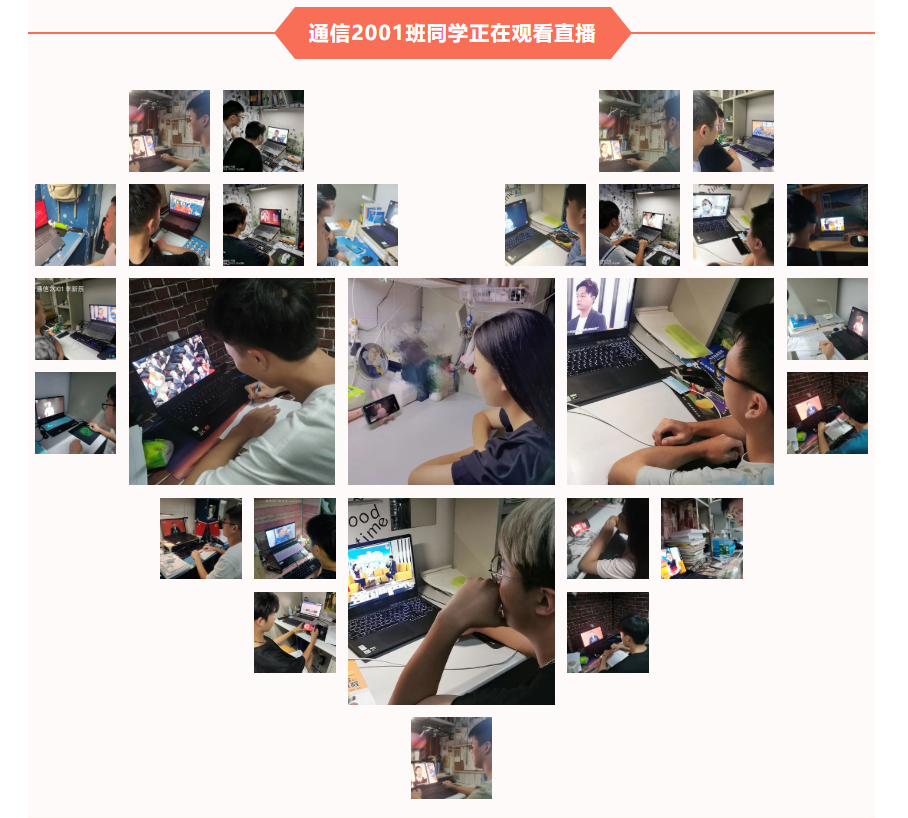在这场观看由团省委制作推出强国新“声”代网络公开课的直播的活动中,我们通信2001班的每个人都其中获得了很大的收获,我们决心要大力弘扬伟大的抗疫精神,向先进学习、勠力同心、锐意进取,用实际行动向英雄致敬。崇高品格催人奋进,先进事迹鼓舞人心。在新时代,我们要像英雄模范那样坚守、像英雄模范那样奋斗,把握机遇,努力学习,成为一名合格的新青年,努力为祖国建设做出更好的、更大的贡献,为新时代人民共和国增添新的荣光。