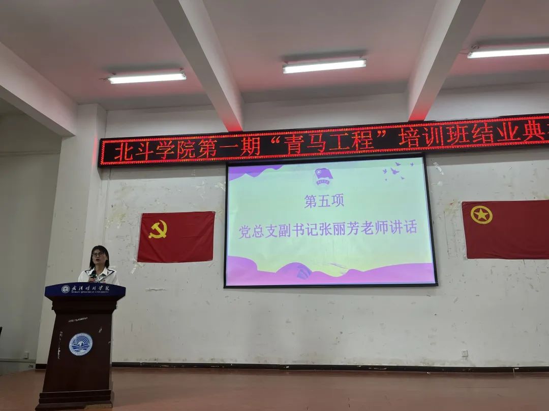 最后,公司党总支书记张丽芳老师对全体学员顺利结业表示热烈祝贺,同时,她也希望各位学员在以后的学习、生活道路上一如既往的保持赤子之心,发挥先年模范作用,营造良好的班级学风和优良的院风校风。