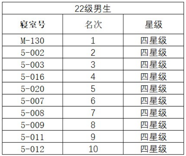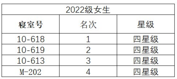 这次查寝活动,工作人员们也统计出了一些优秀寝室,现将表现优秀的寝室名单公示如下: