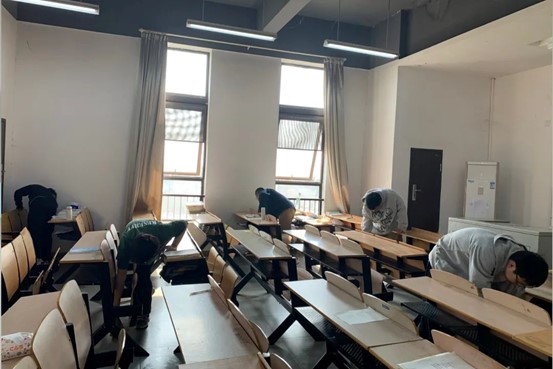 3月16日中午13点,5名同学分工完成后,对自习室展开了约一小时的打扫、消杀工作,同学们积极投入到工作中去,负责扫去灰尘的同学仔细的打扫每一个角落,负责整理物品的同学整理着每一支粉笔、每一本书,负责座椅的擦拭的同学擦去堆积的灰尘,负责消毒的同学将酒精喷洒到每一处细节,负责拖地的同学让自习室地砖焕然一新。发展对象同志利用午休时间的努力,将球友会考研自习室变得整洁明亮、清新温暖。