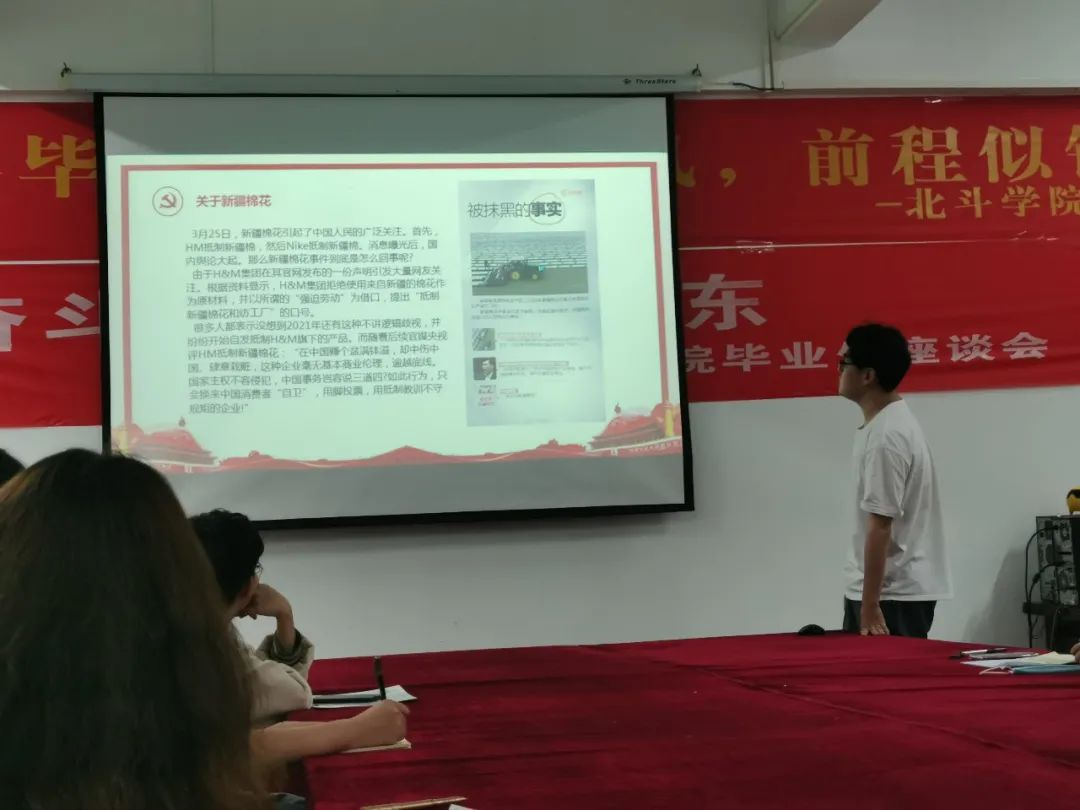 经过一系列的交流与讨论,最后由张婉莹同志对本次活动进行总结:首先对小组选的时事表示认可,有“新冠疫情”“中国疫苗”"中国棉花"等时事政治。呼吁同志们要关注时事政治,了解国内外的政治氛围,有助于提高思想觉悟;关注政治,了解世界政治动向,对新出现的问题和现象能做到深入研究,冷静分析。