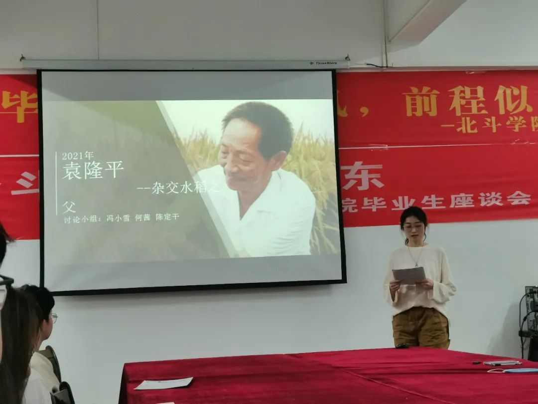 侯奕鸣、张梦晗:侯奕鸣同学在冯小雪同学讲述的基础上,进一步讲述了袁隆平院士的事迹。“一粥一饭,当思来之不易”,我们更应该养成勤俭节约的美德,要从日常生活、穿衣吃饭做起,不要铺张浪费。我们更应该努力去实现袁隆平原始的“禾下乘凉梦”。