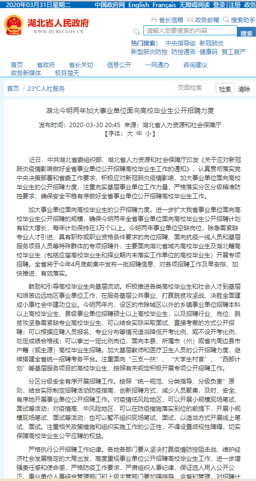 湖北今明两年加大事业单位面向高校毕业生公开招聘力度。